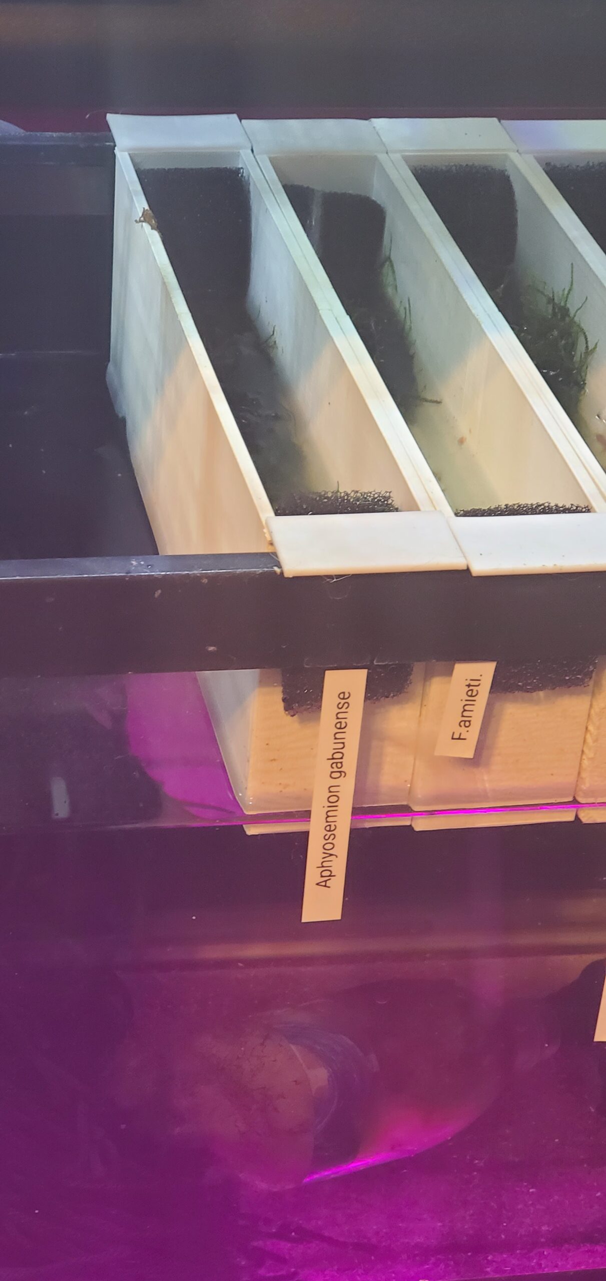 3d printed tray tray fits across a 20 long. Two sidea and lip are assembled with super glue. Each tray has two holes to allow for sponge that keep fish in, but allow water to drain. 10 trays fit in a 20 long with plenty of room left for cleaning, heater, sponge filter, and power head for pumping water into trays. (Not included).