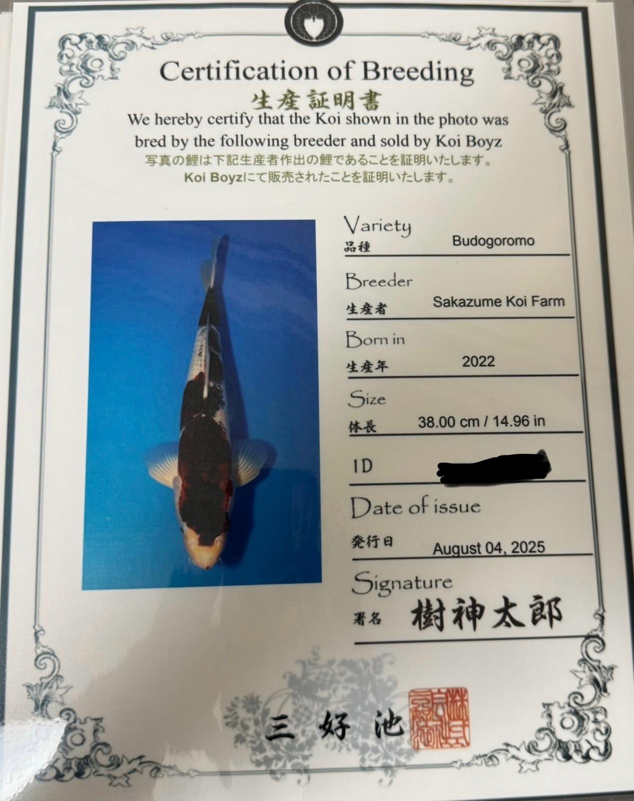 This is imported from Sakazume Koi farm in Japan. Make us an