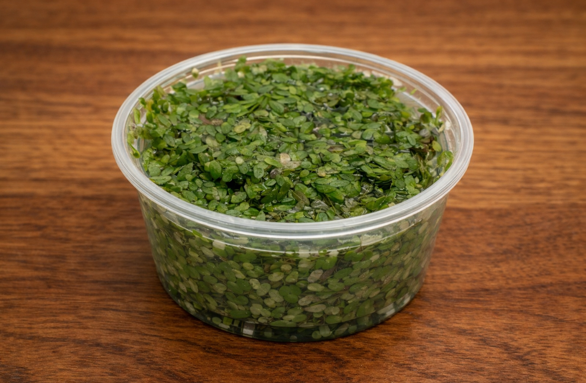 Duckweed is a fast-growing floating plant that helps absorb excess nutrients and provides natural shade and cover for fry and shrimp. It also works well as a supplemental food source for herbivorous fish and turtles.