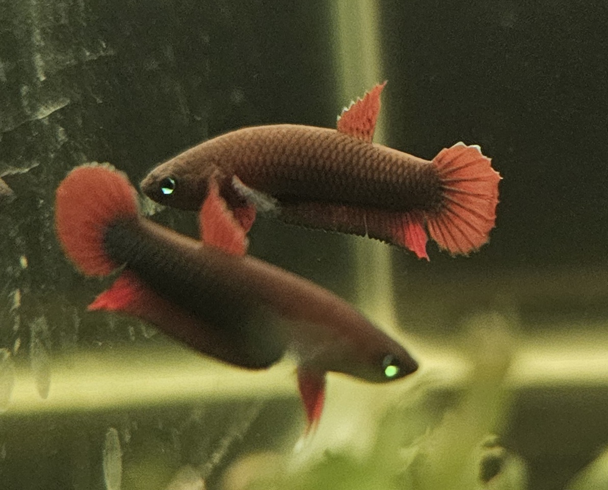 Wild Betta sp. Jade is a rare, undescribed species from Sumatra’s blackwater swamps, part of the Coccina complex. Males display a vivid red body with shimmering green-blue iridescence along the flanks and fins. These are tank bred and raised so they’re use to harder and higher pH (my tanks are 7.2) and easier to care for than wild caught